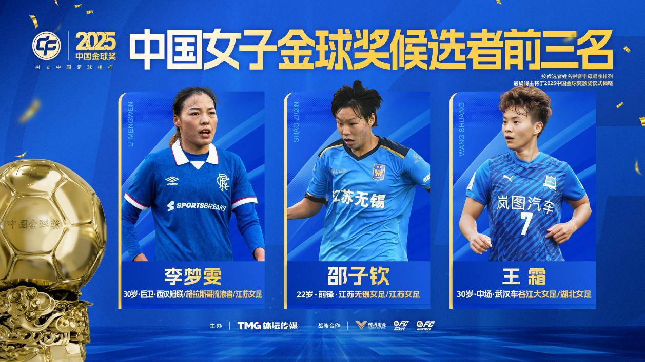 2025中国女子金球奖前三名:李梦雯、邵子钦、王霜